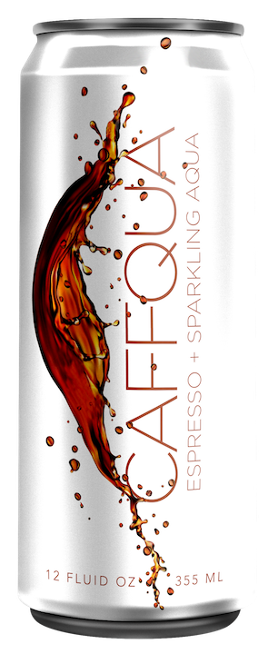 Caffqua is one shot of espresso caffeine splashed in sparkling water. Aqua is, of course, the Latin term for H2O.